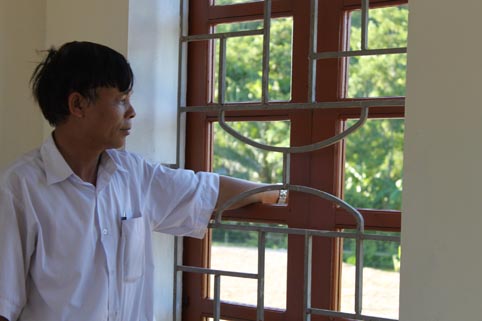 Thầy hiệu trưởng Nguyễn Trọng Đại bên một chiếc cửa sổ dang dở