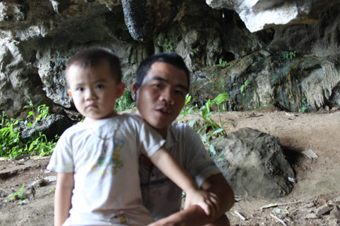 Cha con anh Trần Văn Tây trước hang Đồng Trương