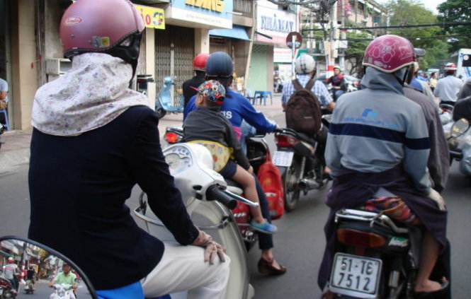 (16:11:14 PM 18/12/2014)Nhiều người Sài Gòn đi làm, đi học sáng 18-12 đã mặc áo ấm. Ảnh chụp trên đường P.V.H., Tân Bình lúc 7g20 sáng 18-12 - Ảnh: M.C