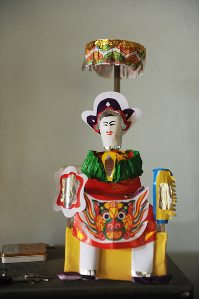 | Để làm xong một "ông Tiến sĩ giấy" phải mất tới 20 chi tiết từ việc tạo khung, lọng, giấy dán mầu, vẽ mặt